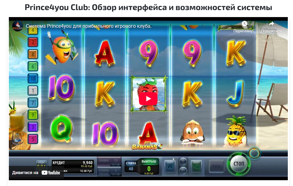 Система Prince4you Club подойдет и для того, кто ищет платформу со множеством игр, чтобы привлечь максимально широкий круг посетителей. Если вы готовы обеспечить стабильное интернет-соединение и следить за юридическими аспектами бизнеса, выбирайте Prince4you Club.