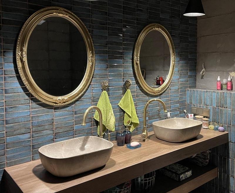 Раковини з округлими обрисами, класичні силуети та продумані деталі створюють відчуття цілісності. У такому просторі кожен елемент виглядає доречно і несе не лише практичну, а й естетичну функцію.
